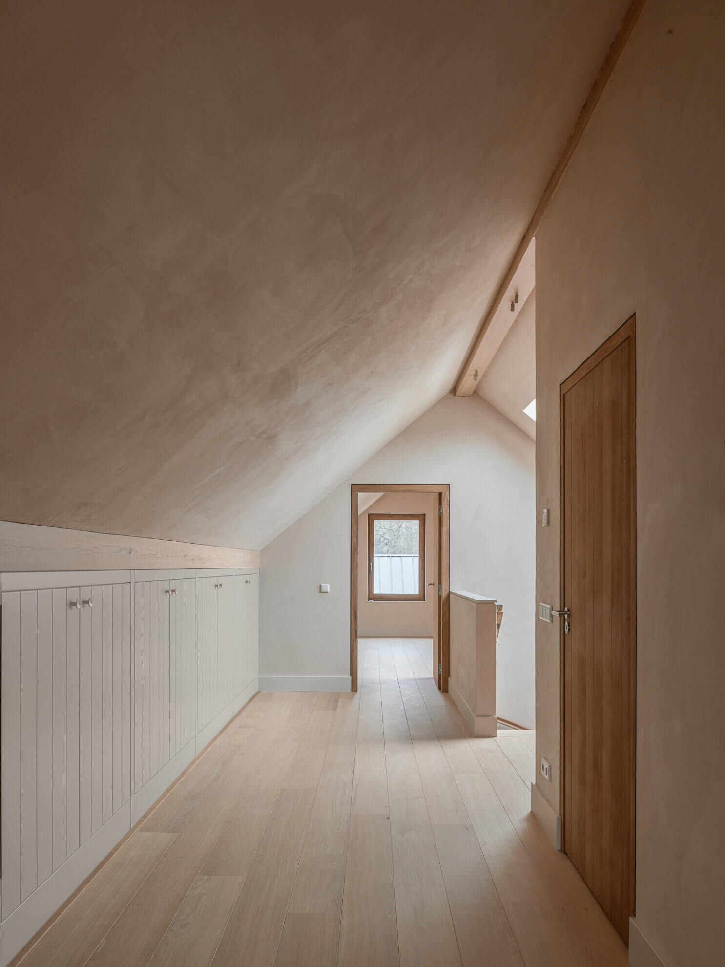 In the rural area of Zeist, on the site of a former farm, ATELIERFRONT designed a biobased and vapour-open house in which inside and outside flow seamlessly into each other. The house consists of two long barn-shaped volumes that are slightly lifted above the landscape and are surrounded by a chestnut wood deck.